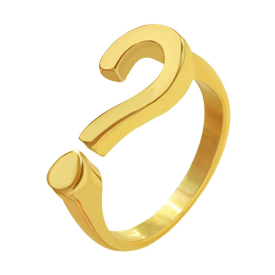 18K gold plated Stainless steel "Question mark" finger ring, Intensity